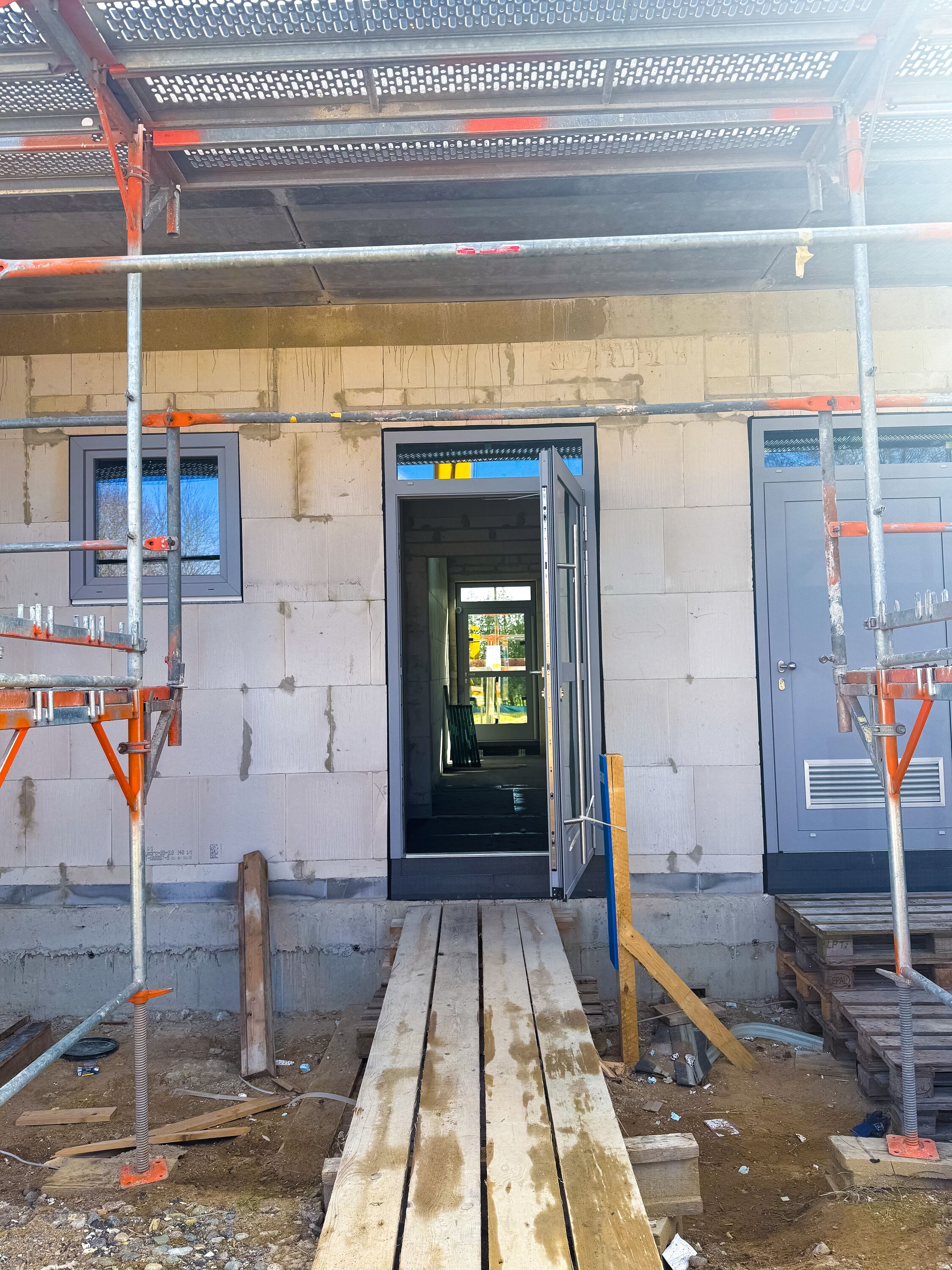 März 2026: Außentüren und Fenster wurden eingesetzt.