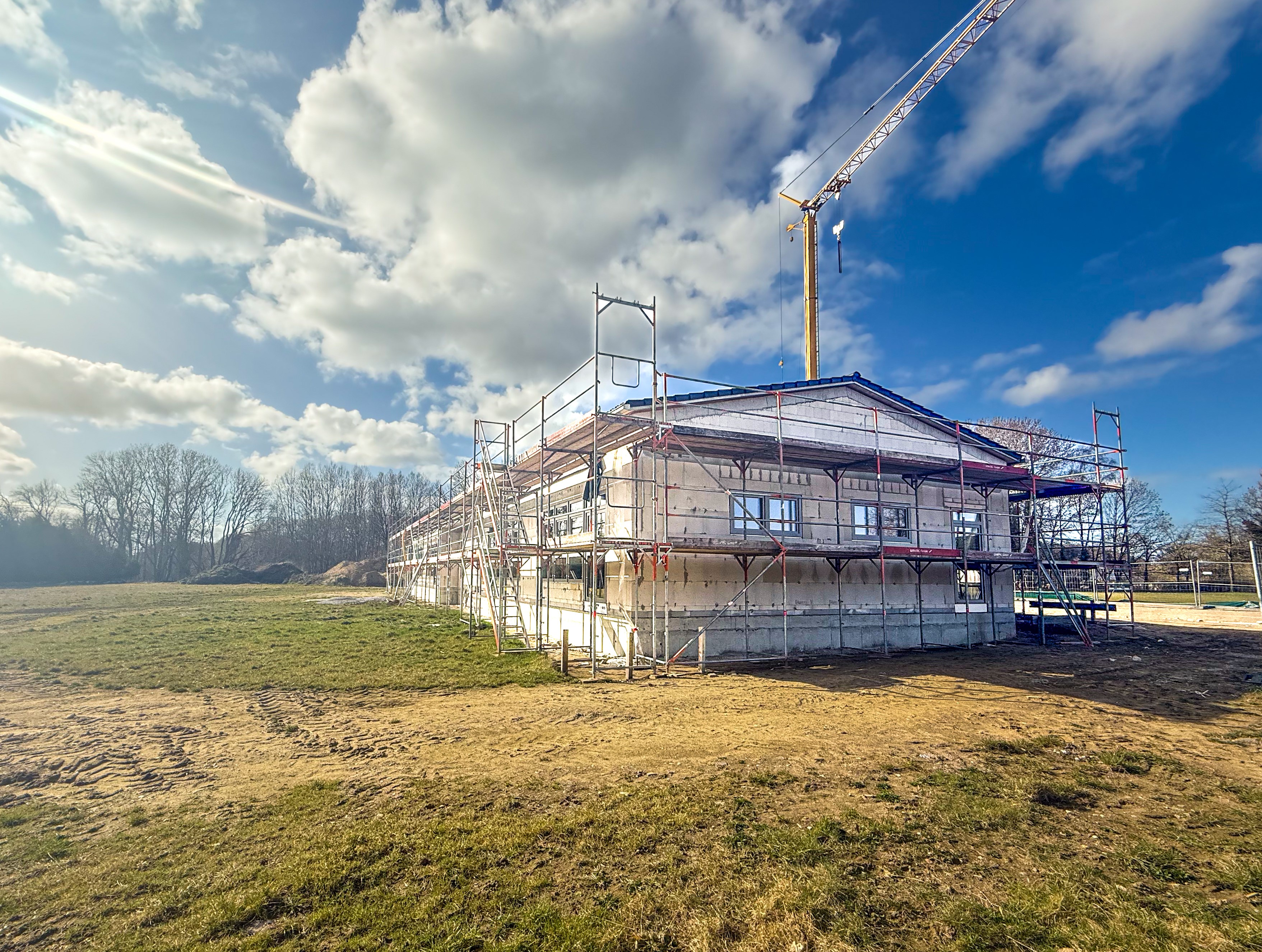 Februar 2026: Die Außenwände sind fertiggestellt. Das Gebäude ist geschlossen und bietet den perfekten Schutz für die kommenden Gewerke.