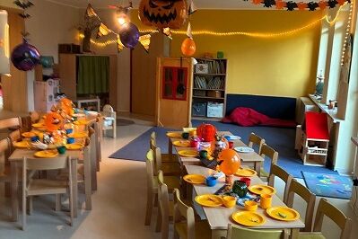 Bei fröhlicher Musik wurde getanzt, gespielt und viel gelacht. Die Kinder kamen in kreativen, süßen und gruseligen Verkleidungen – von kleinen Hexen und Gespenstern bis zu kuscheligen Tieren war alles dabei.