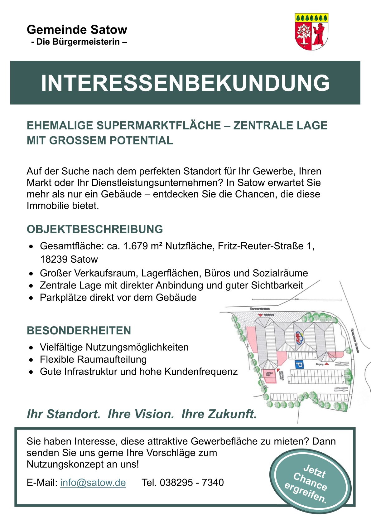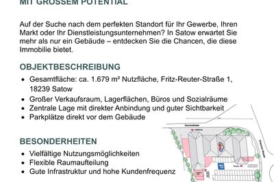 Auf der Suche nach dem perfekten Standort für Ihr Gewerbe, Ihren Markt oder Ihr Dienstleistungsunternehmen? In Satow erwartet Sie mehr als nur ein Gebäude - entdecken Sie die Chancen, die diese Immobilie bietet.