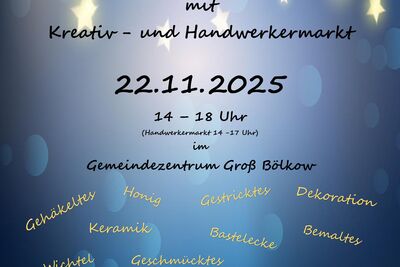 22.11.2025 von 14:00 bis 18:00 Uhr im Gemeindezentrum Groß Bölkow