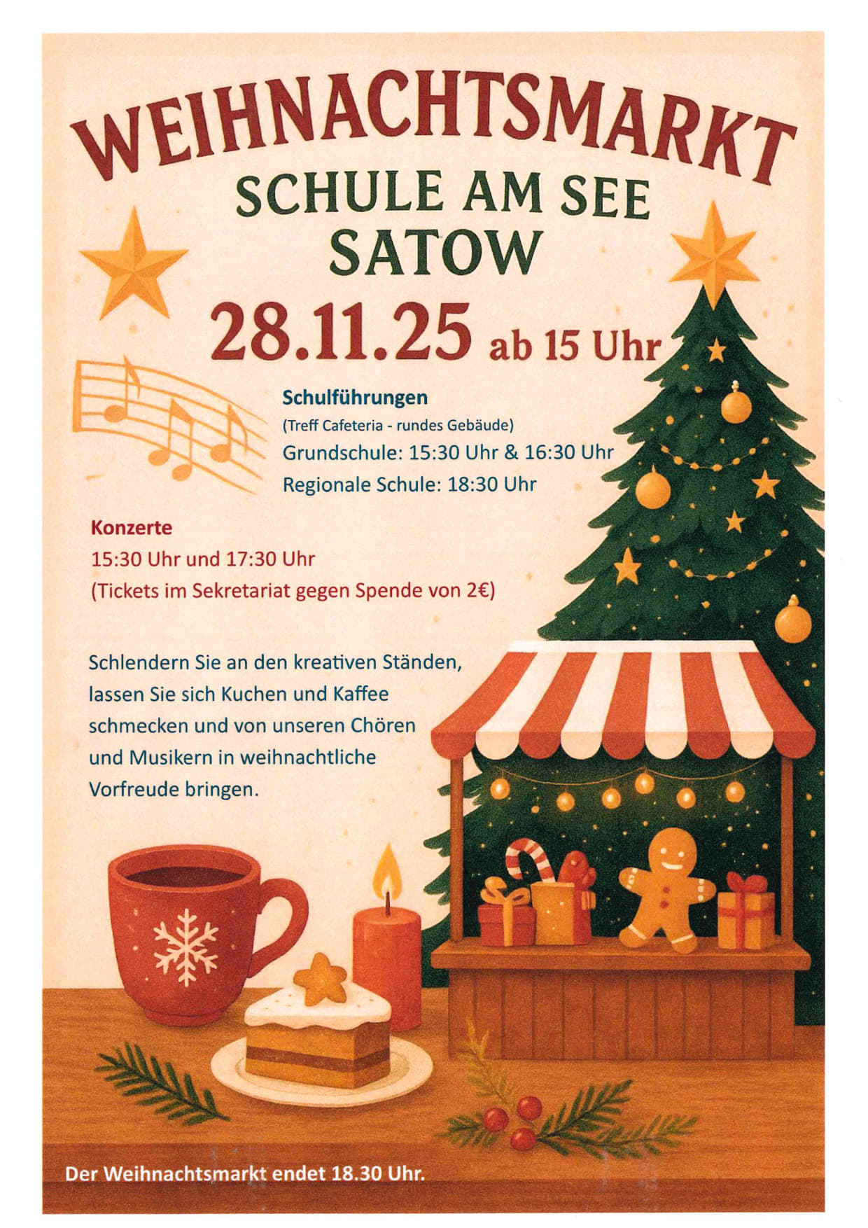 Die Schule am See Satow lädt herzlich zum diesjährigen Weihnachtsmarkt ein.