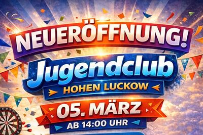 Am 05. März 2026 um 14:00 Uhr eröffnet der neue Jugendclub Hohen Luckow in der Bützower Straße 23 in Hohen Luckow seine Türen.