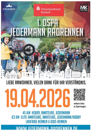 Nähere Informationen erhalten Sie unter dem folgenden Link: https://www.jedermann-radrennen.de/rostock/