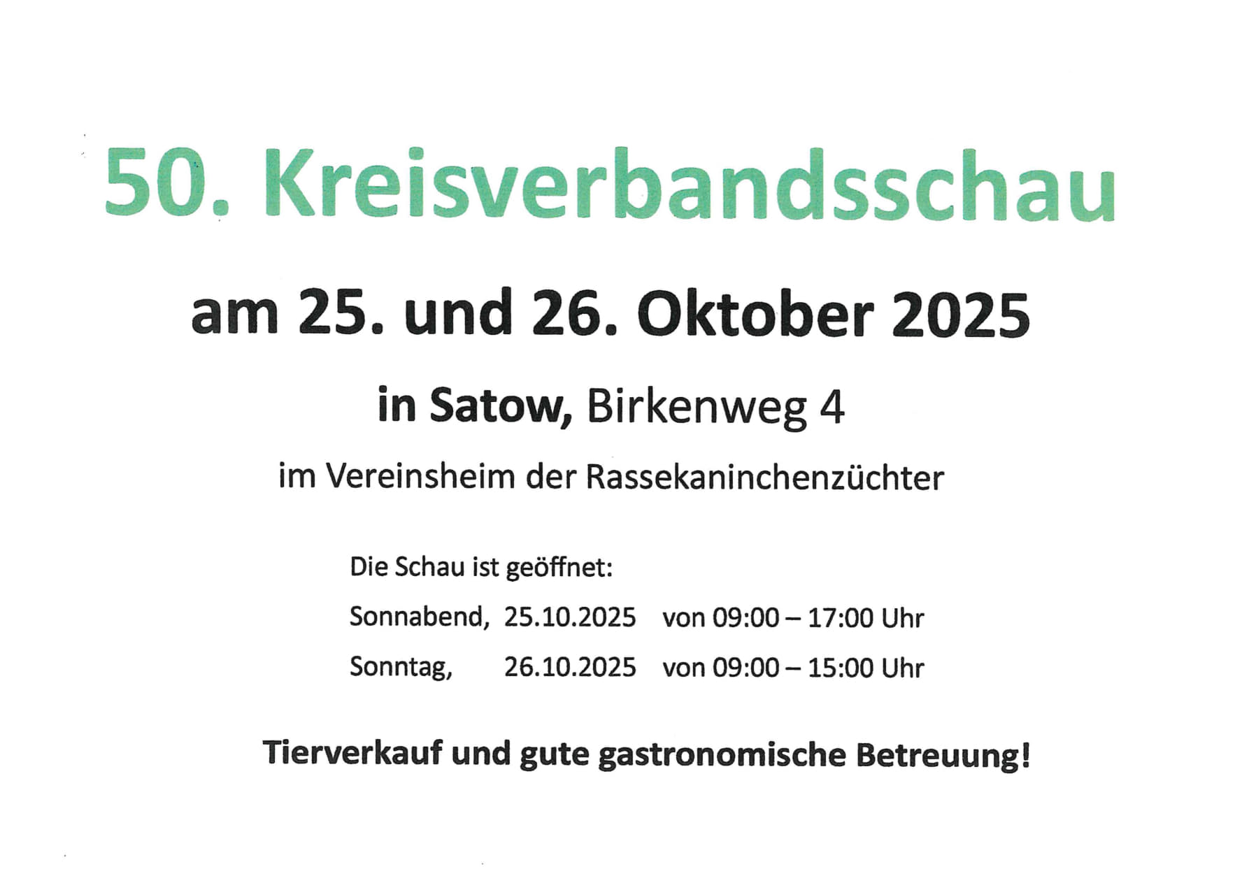 Besuchen Sie die 50. Kreisverbandsschau der Rassekaninchenzüchter mit Tierverkauf und gastronomischer Betreuung!